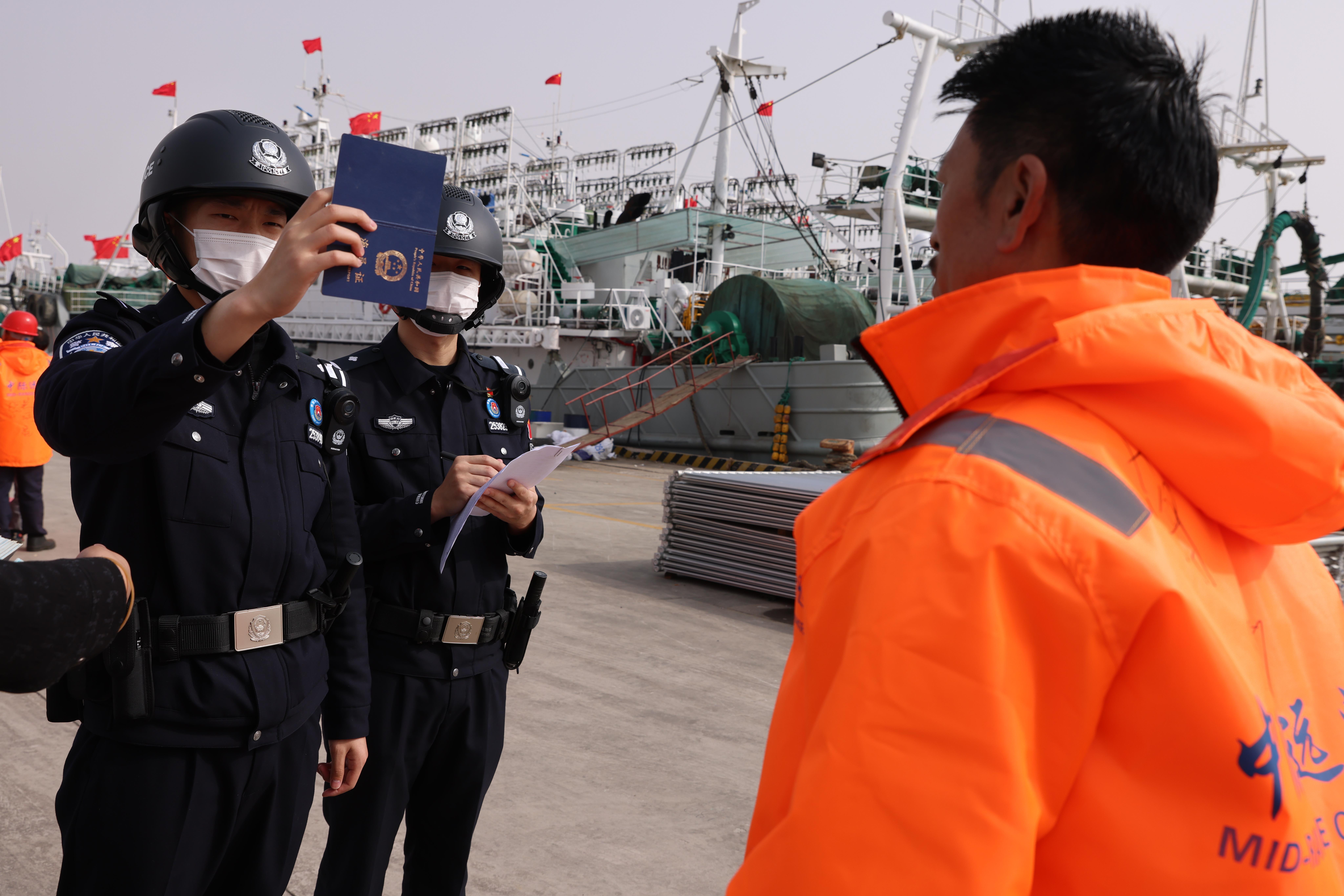 5月20日,遠(yuǎn)洋漁船“金祥11”“金祥12”輪入境緩緩?fù)?吭诤3蓾O港,執(zhí)勤民警第一時間抵達(dá)現(xiàn)場快速為其辦理通關(guān)手續(xù)。“邊檢部門的高效服務(wù)讓我們十分安心,能夠確保捕撈回來的海鮮能第一時間入庫,保證了品質(zhì),為我們節(jié)省了大量時間和成本?!贝按硐驈┻_(dá)激動地說道。