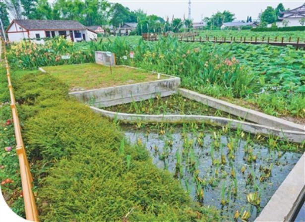 荷塘邊,水聲汩汩。草地下,是由3座池子組成的微動力污水處理池?!斑@里包括沉渣池、四級厭氧池和濕地池。”王敏說,農(nóng)戶家中排出的污水經(jīng)過沉淀和厭氧處理,再經(jīng)過濕地池火山石凈化,達(dá)標(biāo)后排入荷塘。