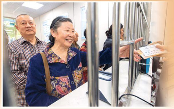 遂寧市60周歲以上老年人免費乘坐公交政策實施后,市民排隊辦卡。魏琴 攝