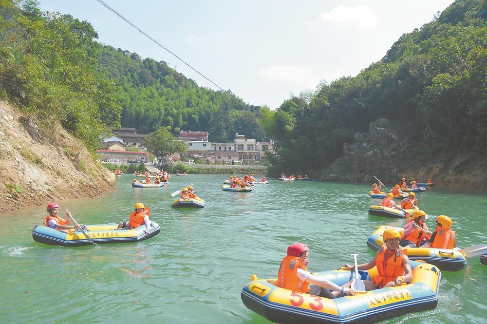 一聲哨響,數(shù)百只游艇從上游順流而下,游客們帶著水槍,打起了水仗。憑著這條水道打造的“神搖漂流”旅游項目如今已成為平和旅游的一張名片,年接待游客超過10萬人次。