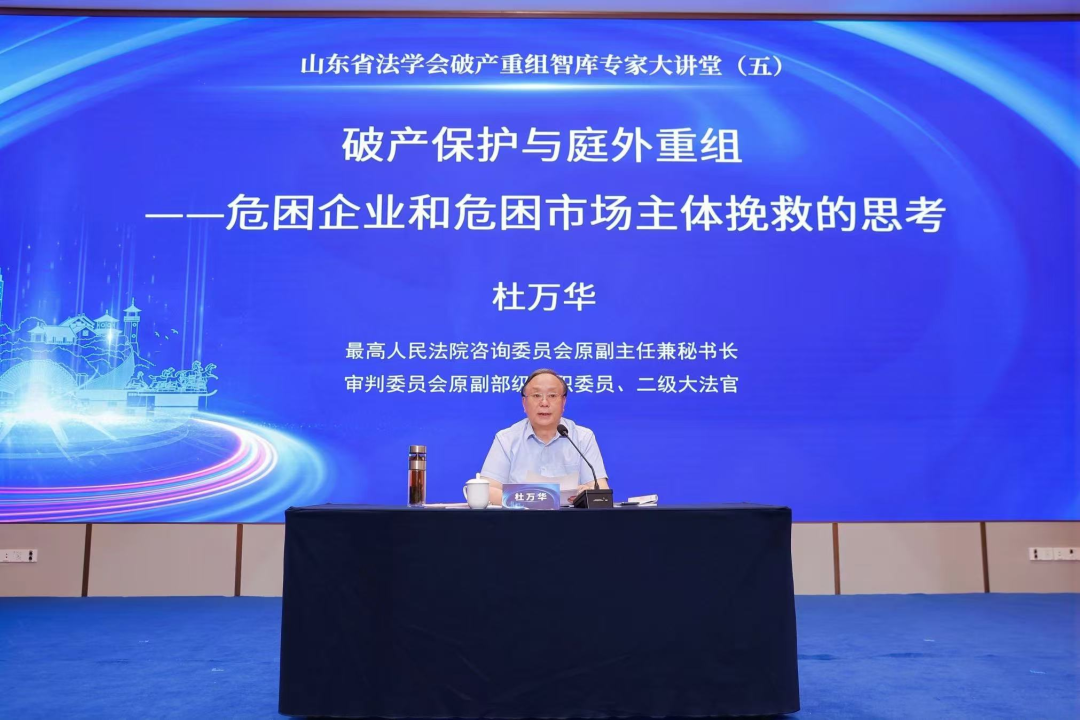 最高人民法院咨詢委員會(huì)原副主任兼秘書長、審判委員會(huì)原副部級(jí)專職委員、二級(jí)大法官杜萬華作《破產(chǎn)保護(hù)與庭外重組——危困企業(yè)和危困市場(chǎng)主體挽救的思考》的主旨發(fā)言,以黨的二十屆三中全會(huì)為何要將破產(chǎn)制度確立為市場(chǎng)經(jīng)濟(jì)基礎(chǔ)制度的深層原因?yàn)榍腥朦c(diǎn),進(jìn)而闡釋市場(chǎng)主體活動(dòng)是市場(chǎng)經(jīng)濟(jì)發(fā)展的核心動(dòng)力,強(qiáng)調(diào)受經(jīng)濟(jì)周期影響,破產(chǎn)是市場(chǎng)經(jīng)濟(jì)中的常態(tài)化現(xiàn)象。針對(duì)“談破色變”的認(rèn)知誤區(qū),主張應(yīng)以積極、理性的態(tài)度正視破產(chǎn)制度。他詳細(xì)論述了我國破產(chǎn)制度的人民性性質(zhì)及保護(hù)性、救濟(jì)性、治理性等特征;同時(shí),對(duì)庭外重組進(jìn)行詳細(xì)論述,并解讀了為什么要搞庭外重組、如何搞好庭外重組,應(yīng)將庭外重組工作與司法審判、管理人工作等做好協(xié)同、銜接,提出下一步的工作是建立司法重整、司法和解、破產(chǎn)清算工作機(jī)制,從而推動(dòng)整體制度的完善。他憑借深厚的司法實(shí)踐積淀,在深入解析破產(chǎn)保護(hù)與庭外重組協(xié)同價(jià)值的同時(shí),更精準(zhǔn)剖析了危困企業(yè)及市場(chǎng)主體的系統(tǒng)性挽救路徑。