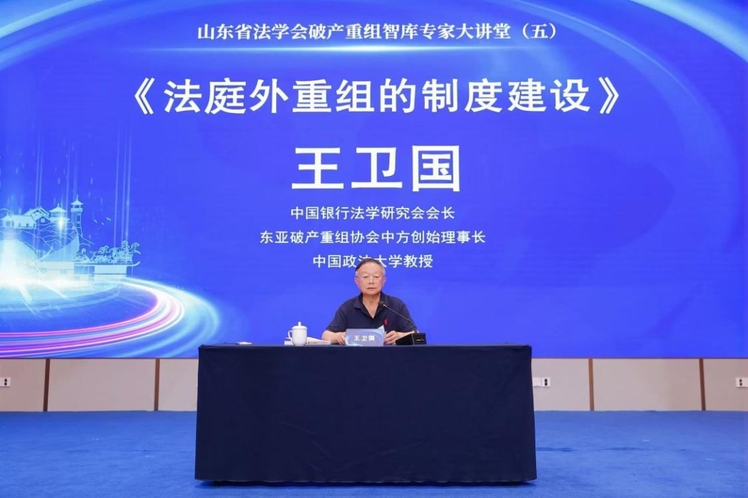山東省法學(xué)會(huì)破產(chǎn)重組智庫專家、中國銀行法學(xué)研究會(huì)會(huì)長、東亞破產(chǎn)重組協(xié)會(huì)中方創(chuàng)始理事長、中國政法大學(xué)教授王衛(wèi)國作《法庭外重組的制度建設(shè)》的主旨發(fā)言,系統(tǒng)地從庭外重組的性質(zhì)、地位、意義、模式以及庭外重組與司法制度的銜接問題等方面講述了庭外重組制度的構(gòu)建路徑,強(qiáng)調(diào)必須將治理金融風(fēng)險(xiǎn)和企業(yè)的債務(wù)困境放在一個(gè)非常突出的地位,指出庭外重組的三種模式及制度建設(shè)的目標(biāo)和要素,通過對(duì)國內(nèi)外破產(chǎn)制度的實(shí)踐進(jìn)行對(duì)比、分析,為危困企業(yè)市場(chǎng)化、法治化拯救提供更堅(jiān)實(shí)的規(guī)則支撐,助力優(yōu)化營商環(huán)境與經(jīng)濟(jì)高質(zhì)量發(fā)展。他通過系統(tǒng)闡釋了法庭外重組制度建設(shè)的核心理念與實(shí)踐路徑,對(duì)庭外重組制度的研究思路進(jìn)行了深入分析,為庭外重組制度的理論研究和實(shí)務(wù)問題解決提供啟發(fā)與新的思路。
