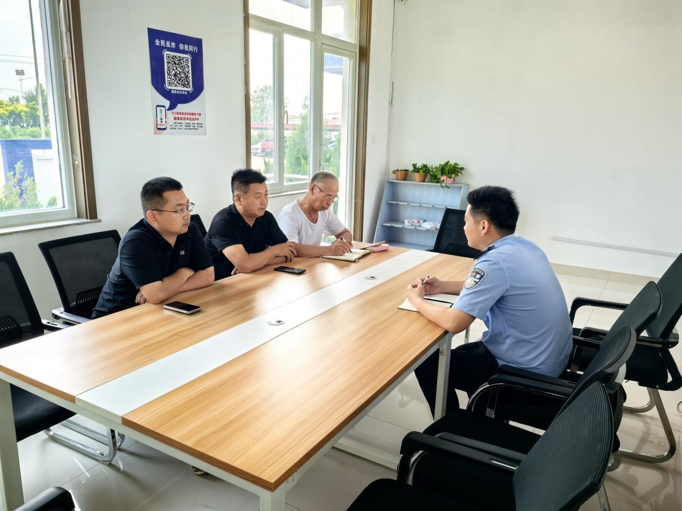 刁口鄉(xiāng)派出所與鎮(zhèn)村干部、網格員等“警網融合”隊伍定期召開工作會議