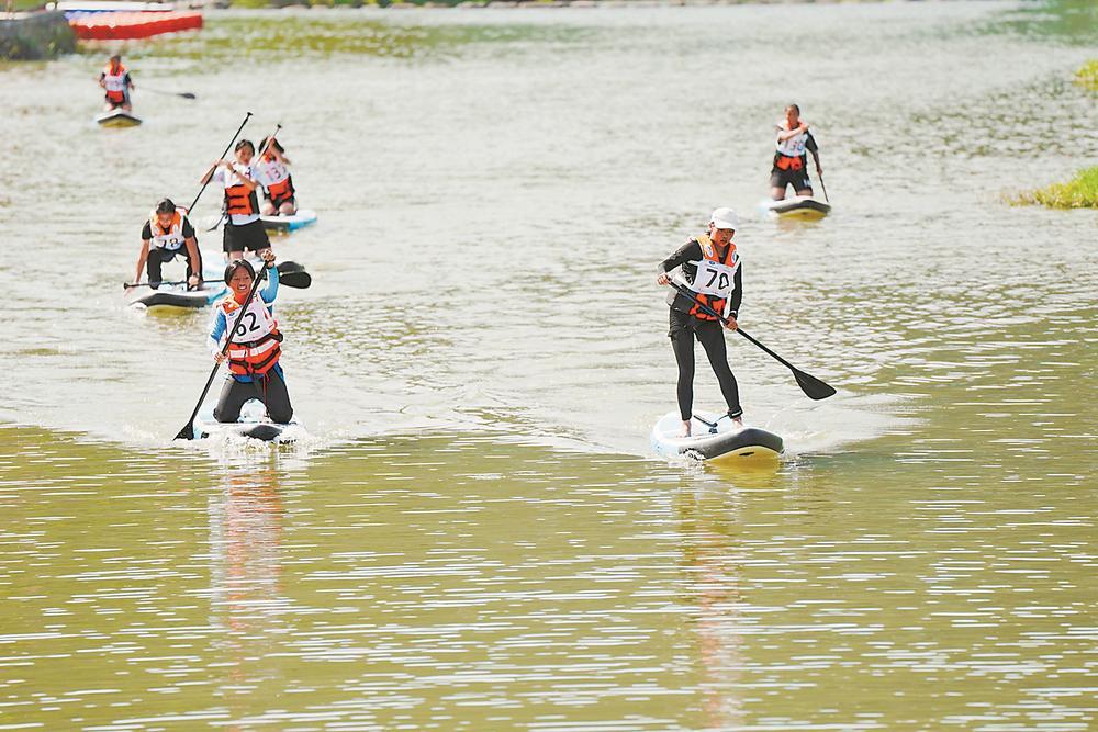 福建省水上運(yùn)動(dòng)聯(lián)賽(林墩站)比賽期間,選手們劈波斬浪。