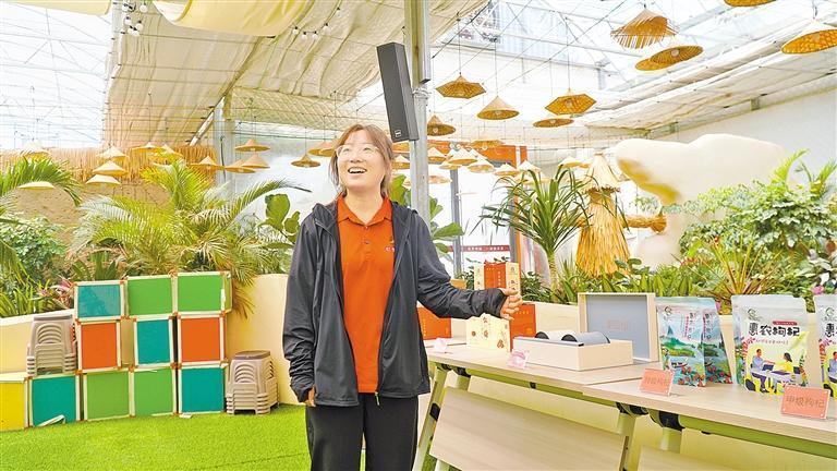 大學(xué)生李文迪為游客推介枸杞產(chǎn)品。