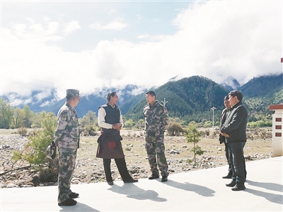 4月底,全國(guó)政協(xié)委員、西藏軍區(qū)某旅旅長(zhǎng)江勇西繞一行來(lái)到扶貧聯(lián)系點(diǎn)拉薩市城關(guān)區(qū)娘熱街道加爾西村,看望慰問(wèn)困難群眾。在加爾西村村委會(huì),江勇西繞對(duì)村黨支部書記索朗德吉說(shuō),隨著拉薩旅游旺季的到來(lái),疫情防控的輸入性壓力將會(huì)增大,他們?cè)敢饫^續(xù)在疫情防控工作中對(duì)加爾西村提供支持和幫助。