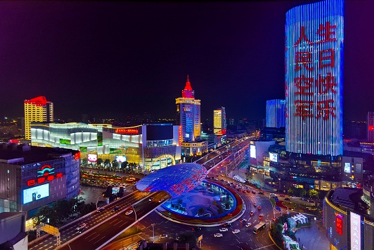 11月9日晚,為慶祝人民空軍成立72周年,上海五角場(chǎng)商圈“彩蛋”燈光演繹系統(tǒng)和周邊大樓樓體屏聯(lián)動(dòng)上演以“人民空軍忠于黨”為主題的燈光秀,吸引眾多市民駐足觀看。