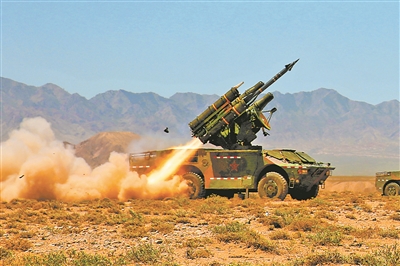 “發(fā)射!”一聲令下,幾枚導(dǎo)彈拖著尾焰撲向目標(biāo),成功摧毀“敵”機(jī)。