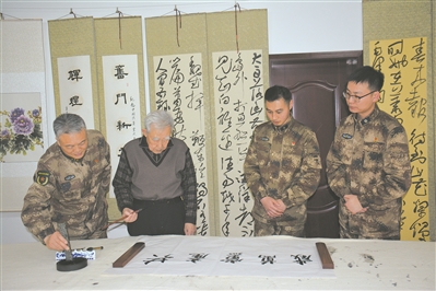 活動現場,女生獨唱《莫斯科郊外的晚上》、詩朗誦《奮進一流譜新篇》……一個個軍地聯(lián)合自編自演的節(jié)目受到歡迎。洛陽市書畫院的書法愛好者現場揮毫潑墨,多種書體各顯神韻。老干部、老阿姨拿著一副副寓意深刻、飽含祝福的春聯(lián)、“福”字,喜笑顏開。