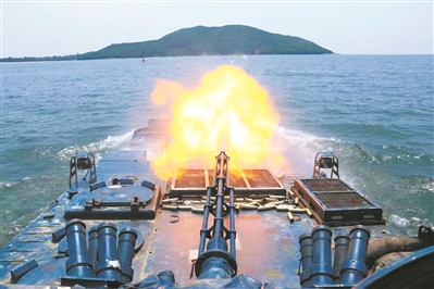 圖③:海軍陸戰(zhàn)隊某旅組織跨晝夜海上實彈射擊訓(xùn)練,一批新馭手、新射手在復(fù)雜海域經(jīng)受考驗。圖為步戰(zhàn)車對岸上目標進行射擊。簡貴洋 攝