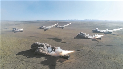 圖②:第82集團軍某旅深入草原腹地參加聯(lián)合演練,探索和檢驗深化陸空協(xié)同的訓(xùn)法戰(zhàn)法。圖為火箭彈出膛瞬間。耿露 攝