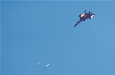 首輪投彈完畢后,飛行員按照指揮員指令建立攻擊航線,對(duì)目標(biāo)再次進(jìn)行俯沖火箭彈射擊。瞄準(zhǔn),穩(wěn)住,射擊!動(dòng)作一氣呵成,數(shù)枚火箭彈直撲靶標(biāo)。轉(zhuǎn)眼間,海面上騰起團(tuán)團(tuán)巨浪。