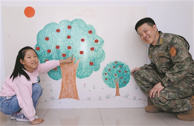 在張威偉家的墻上,畫著一棵蘋果樹。不知從哪天起,蘋果樹旁又“長”出一棵小蘋果樹。女兒說,爸爸表現(xiàn)好,她就用紅紙剪一個(gè)蘋果貼在上面;表現(xiàn)不好,蘋果樹上就會(huì)長出藍(lán)色的蘋果。