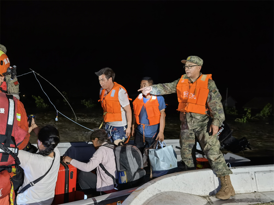 圖為湖南省軍區(qū)民兵轉(zhuǎn)移受困群眾。