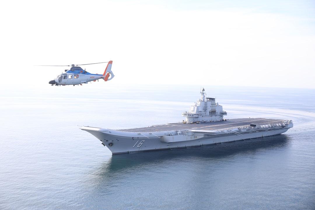夏夜,遼寧艦正破浪前行,浪涌拍打著艦舷發(fā)出低沉而有力的怒吼。不遠處,一架搜救直升機正隱藏在海天的黑幕中。