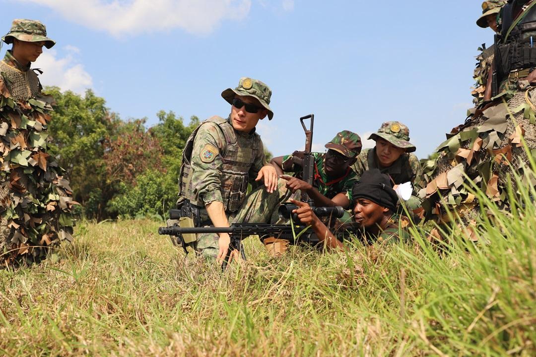 在馬坪加綜合訓(xùn)練中心綜合反恐訓(xùn)練場,中坦聯(lián)合特戰(zhàn)分隊隊員間往往通過幾個簡短的指揮口令和戰(zhàn)術(shù)手語,就能實現(xiàn)無障礙溝通,甚至通過一個眼神彼此就能心領(lǐng)神會。這種密切協(xié)同、配合默契的狀態(tài),隨著中坦兩軍聯(lián)合演習(xí)的推進不斷深化。