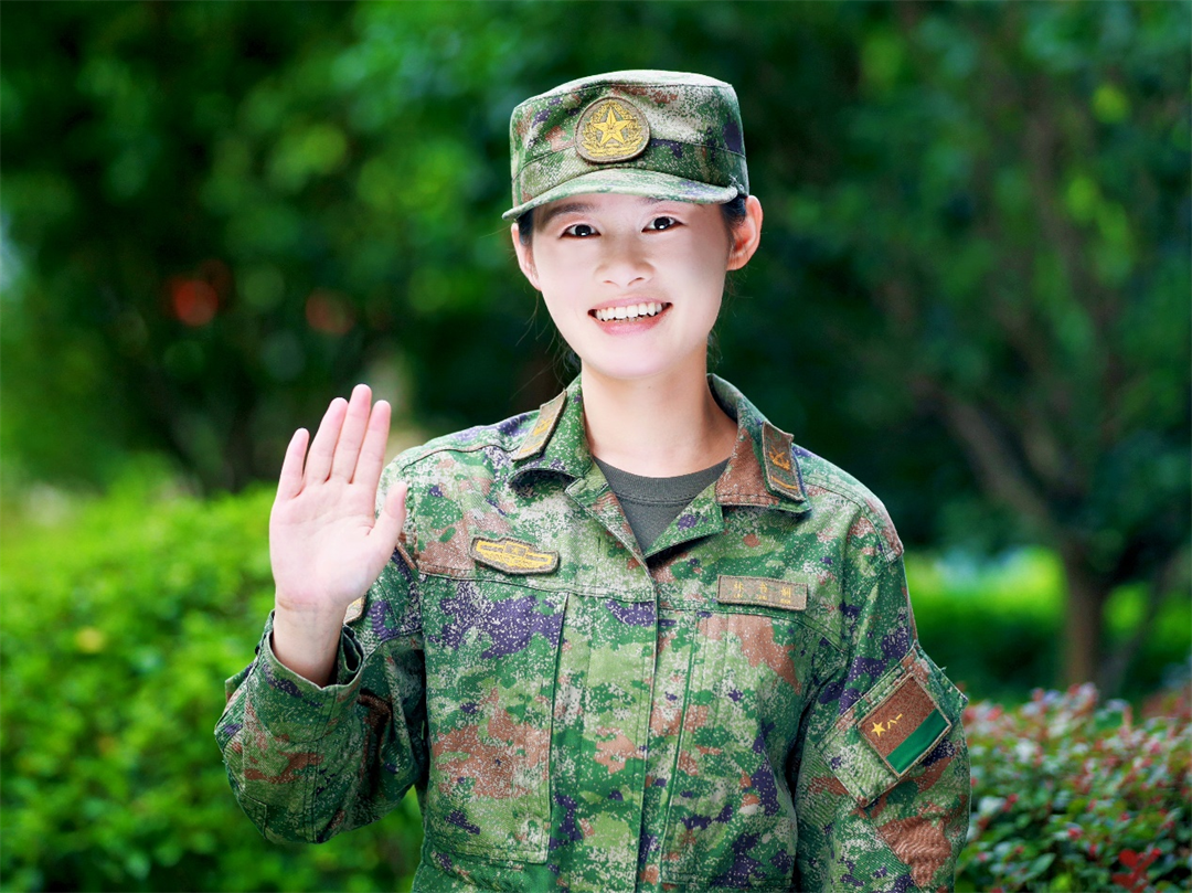 圖為中士林書(shū)嫻最后一次著軍裝和戰(zhàn)友打招呼。