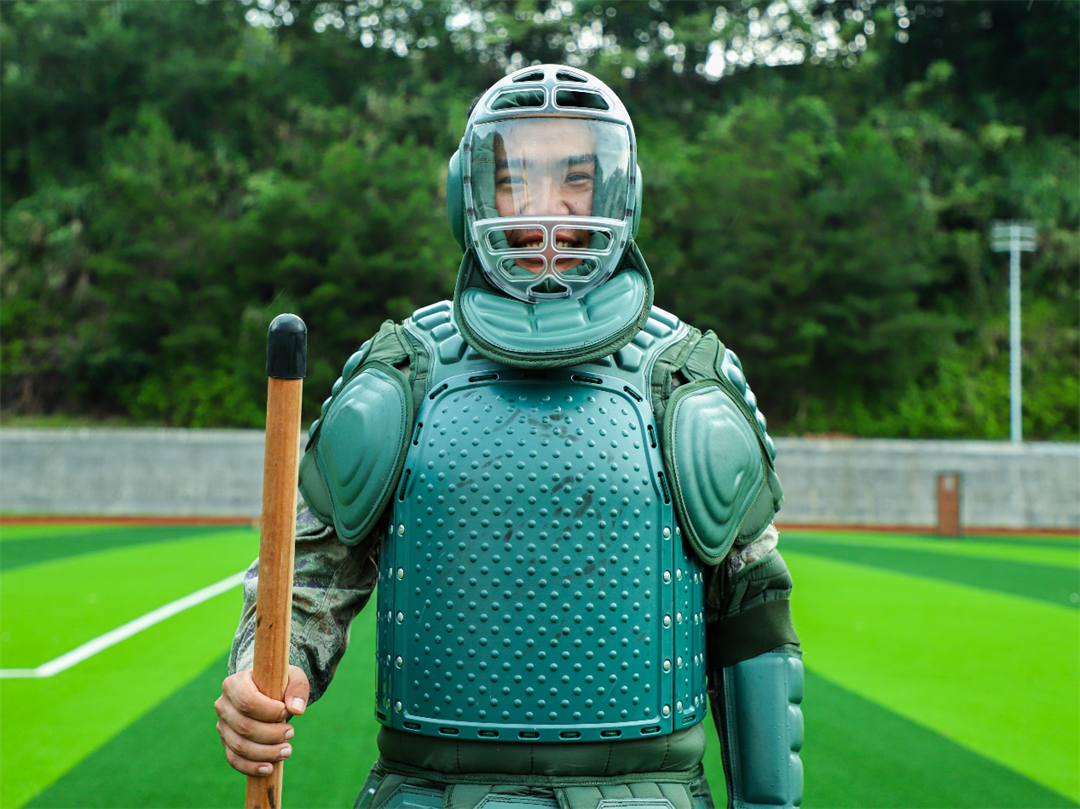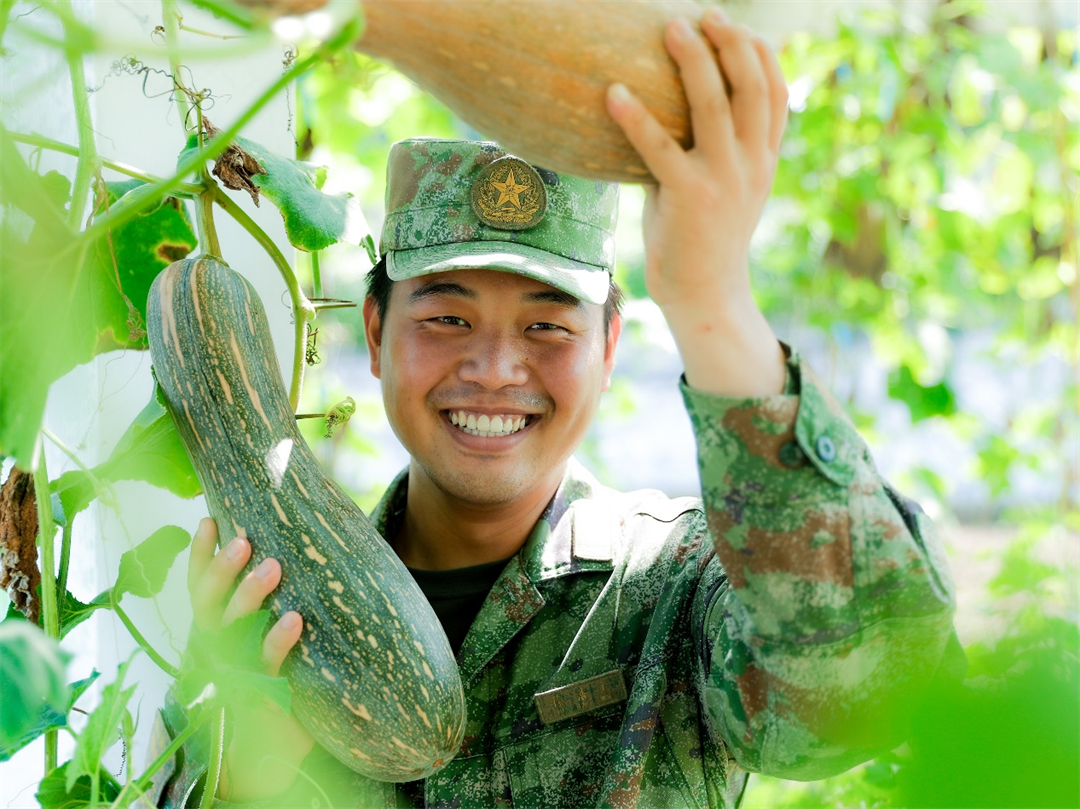 圖為中士徐浩文最后一次享受軍營(yíng)豐收的喜悅。