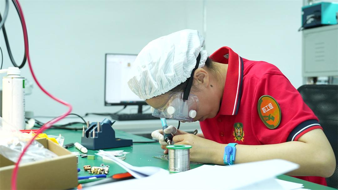 圖為本屆大賽電子專用設(shè)備裝調(diào)工職工組第一名李永霞。