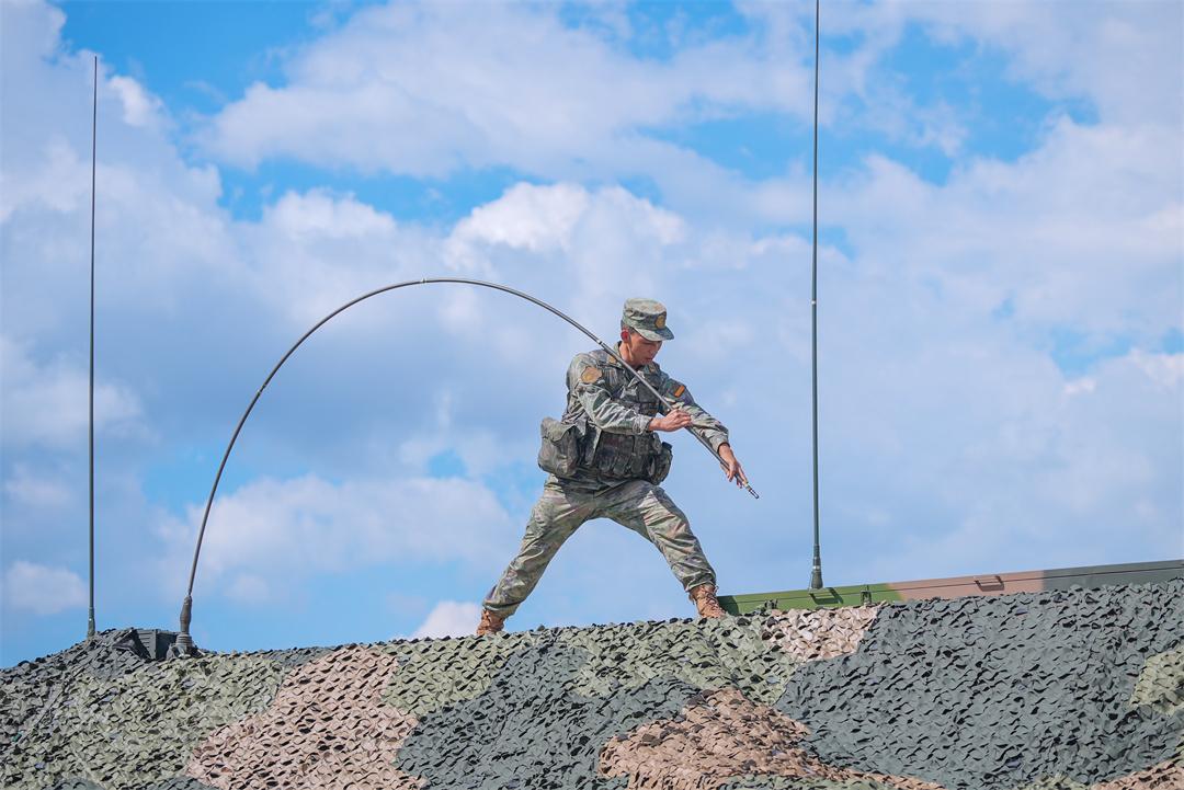 圖為官兵架設通信天線,快速接通通信鏈路。代龍富 攝