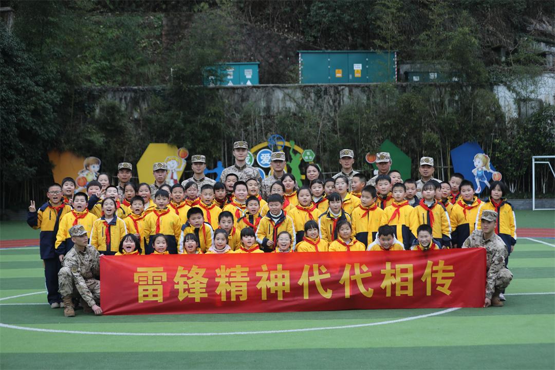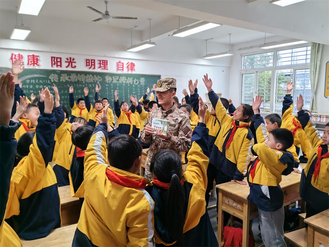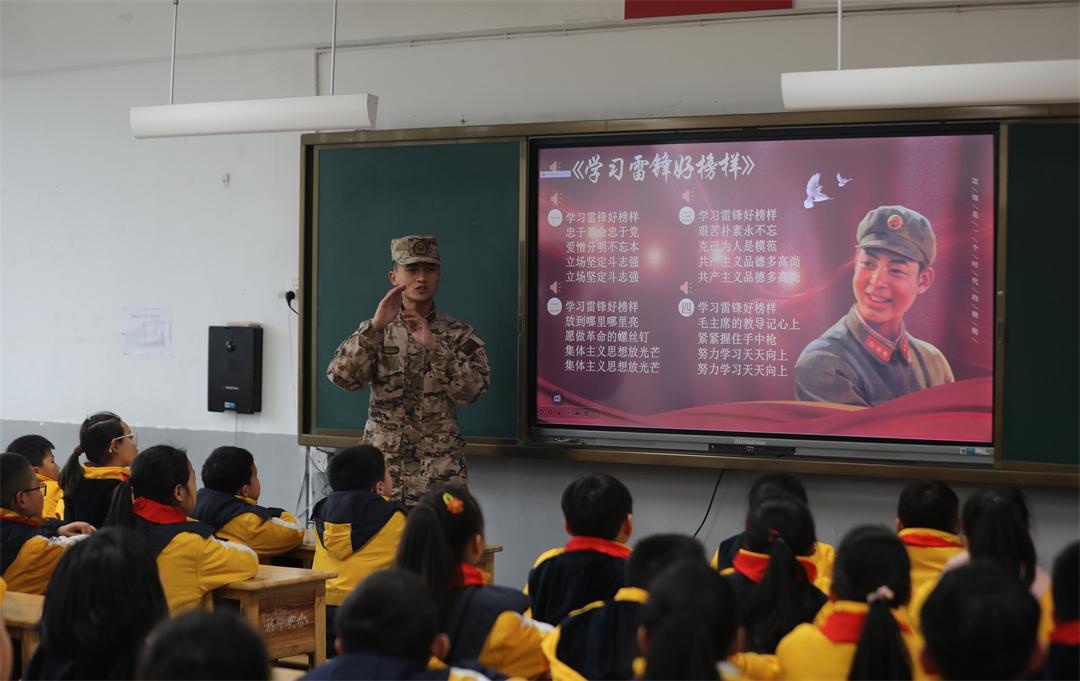 圖為武警官兵來(lái)到駐地小學(xué)用雷鋒精神共建共育新人。