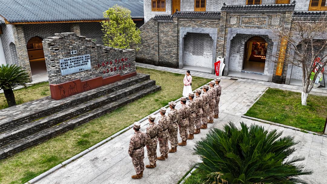 “少年有志報神州,一萬虎犢帶吳鉤?!痹谥醒肷倌昙t軍文旅小鎮(zhèn)講解員黃欣的吟誦聲中,全體人員踏上重走紅軍路的征程。