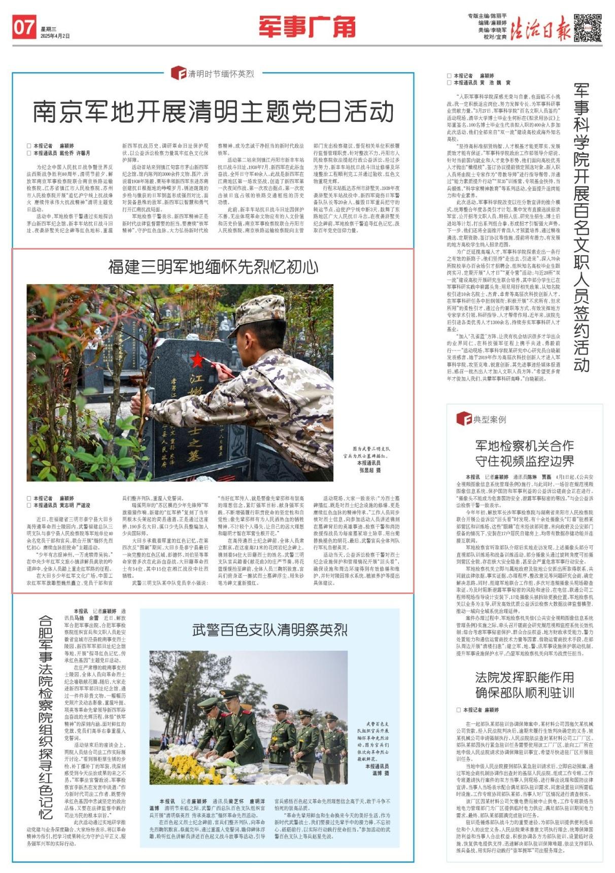 近日,在福建省三明市泰寧縣大田鄉(xiāng)高傳遴革命烈士陵園內(nèi),武警福建總隊三明支隊與泰寧縣人民檢察院等軍地單位40余名黨員干部和官兵,聯(lián)合開展“緬懷先烈憶初心 賡續(xù)血脈擔(dān)使命”主題活動。