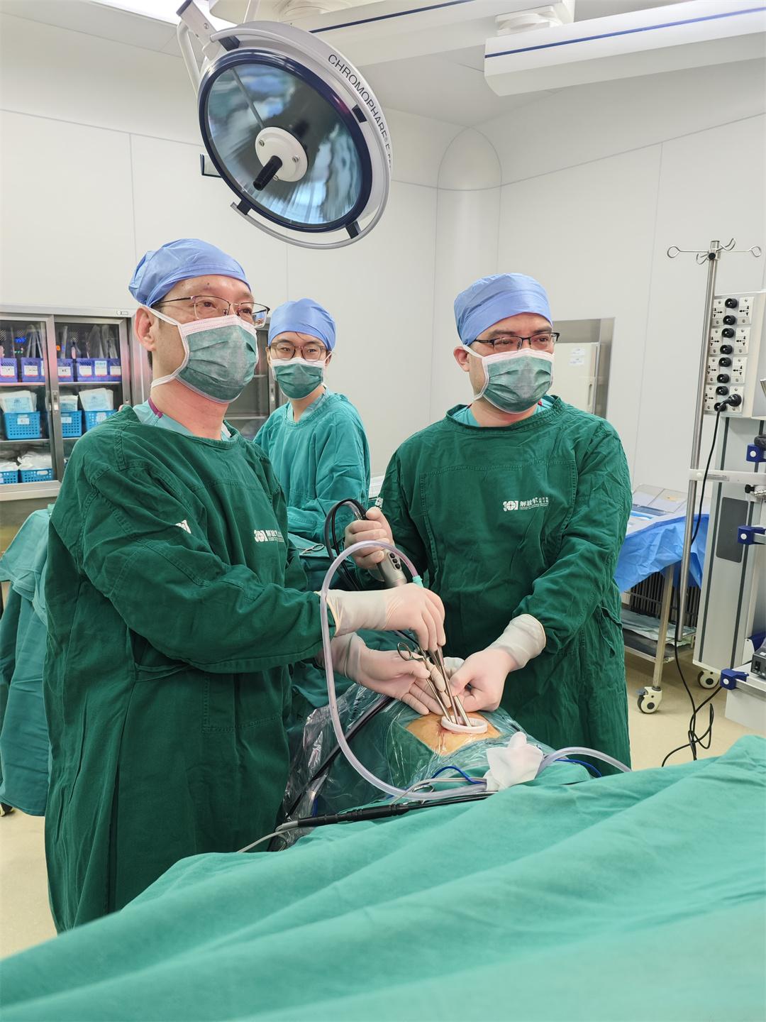 宋偉安帶領團隊反復研究胸部CT和病情資料,并與麻醉科、外科ICU等多學科協(xié)作,制定詳細的圍手術期應急預案。今年2月19日下午,手術開始。在胸腔鏡輔助下,宋偉安團隊精準操作,逐步完成開胸、剖開心包、游離神經(jīng)、分離肺動脈圓錐、阻斷肺動脈主干等關鍵步驟。經(jīng)過3個多小時努力,團隊成功切除肺門根部侵入心包的惡性腫瘤,并徹底清掃了轉移的淋巴結。