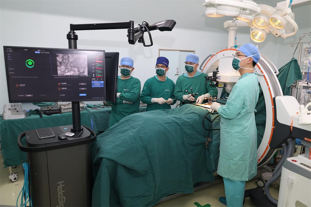 如果采取傳統(tǒng)開放手術(shù)治療,要在布滿重要血管神經(jīng)的腹股溝區(qū)開20厘米刀口,手術(shù)時間至少也要8小時,出血量預(yù)估3000毫升?;颊呤苤貏?chuàng)并手術(shù)后極度虛弱的身體難以承受,只能選擇保守治療。面對棘手病例,陳華團(tuán)隊借助先進(jìn)技術(shù)成果,運用骨盆解鎖復(fù)位系統(tǒng)和骨科手術(shù)導(dǎo)航系統(tǒng),在僅打幾個孔的情況下可實現(xiàn)微創(chuàng)閉合手術(shù)。