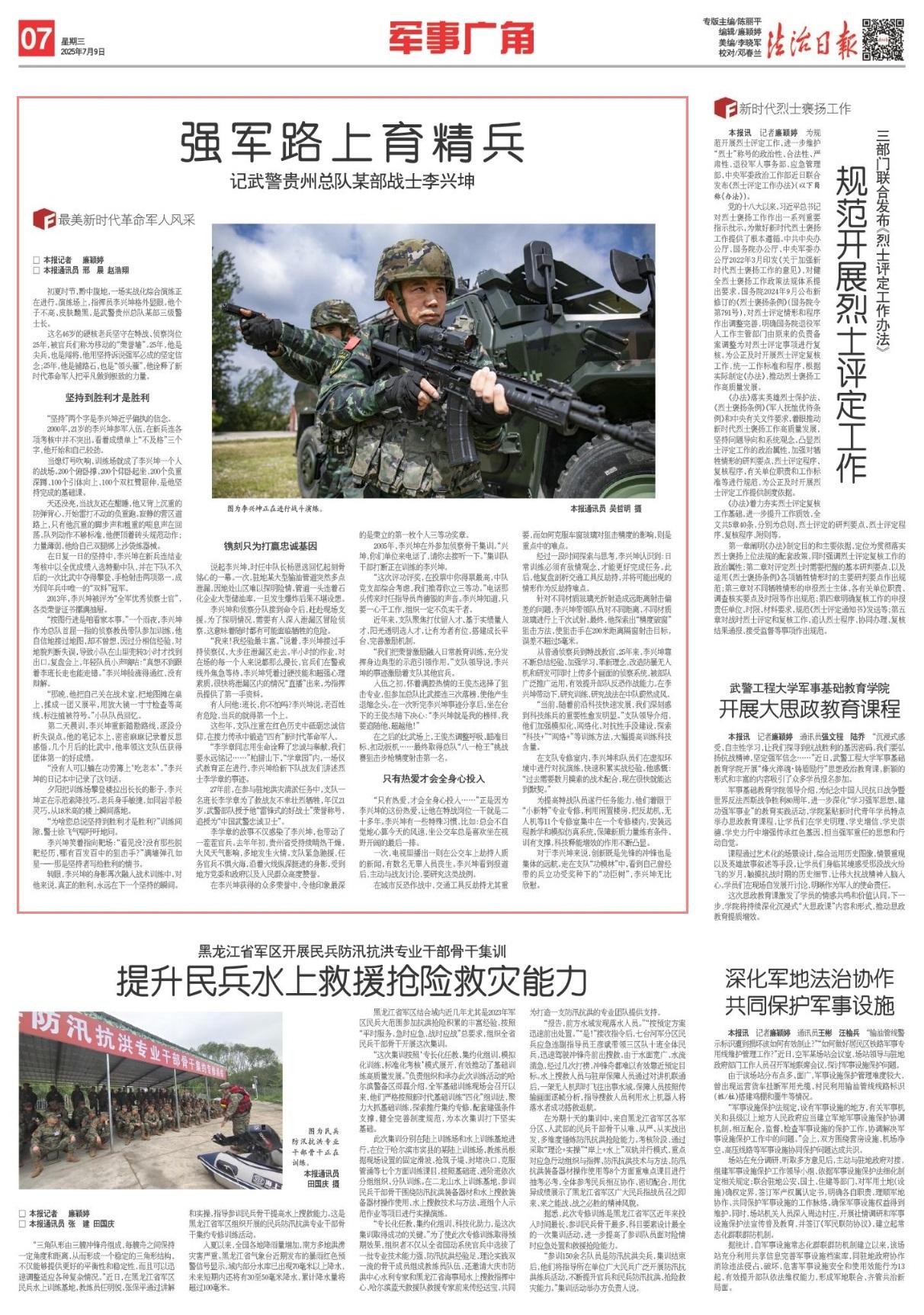 在日復(fù)一日的堅(jiān)持中,李興坤在新兵連結(jié)業(yè)考核中以全優(yōu)成績?nèi)脒x特勤中隊(duì),并在下隊(duì)不久后的一次比武中奪得攀登、手槍射擊兩項(xiàng)第一,成為同年兵中唯一的“雙料”冠軍。