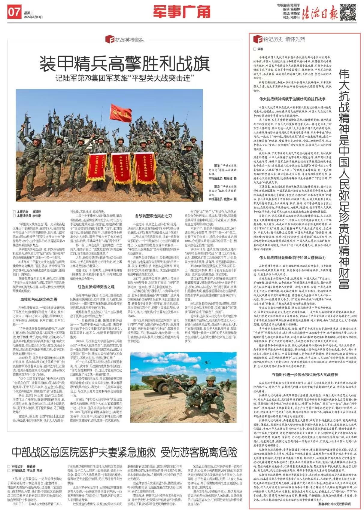 今年是中國(guó)人民抗日戰(zhàn)爭(zhēng)暨世界反法西斯戰(zhàn)爭(zhēng)勝利80周年。80年前,中國(guó)人民經(jīng)過長(zhǎng)達(dá)14年艱苦卓絕的斗爭(zhēng),取得抗日戰(zhàn)爭(zhēng)的偉大勝利。中國(guó)共產(chǎn)黨作為全民族抗戰(zhàn)的中流砥柱,引領(lǐng)中華兒女鑄就了天下興亡、匹夫有責(zé)的愛國(guó)情懷,視死如歸、寧死不屈的民族氣節(jié),不畏強(qiáng)暴、血戰(zhàn)到底的英雄氣概,百折不撓、堅(jiān)忍不拔的必勝信念。