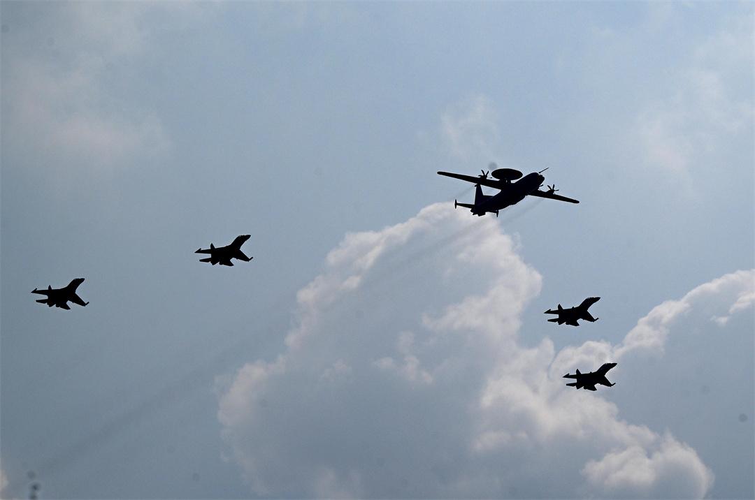 戰(zhàn)鷹呼嘯,首先飛過來的是預(yù)警指揮機梯隊??站?500A與殲-16戰(zhàn)機編隊、空警-600與殲-15T艦載機編隊依次接受檢閱。長空千里眼,云天中軍帳。隨著國產(chǎn)新型預(yù)警機研制列裝,我軍指揮控制、預(yù)警探測、協(xié)同打擊能力顯著提高。