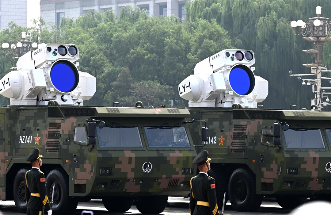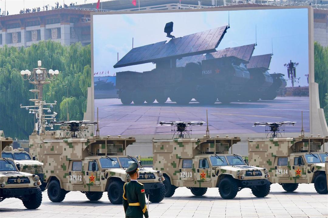 最后一個出場的是低空戰(zhàn)場、密織火網(wǎng)的反無人機方隊。受閱的反無彈炮系統(tǒng)、高能激光武器、高功率微波武器等成體系建設(shè),既能軟殺傷,又能硬摧毀,是反制無人機的“鐵三角”。