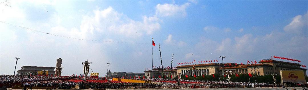 帶領(lǐng)裝備方隊首先入場的戰(zhàn)旗方隊通過天安門接受檢閱,與人民英雄紀念碑交相呼應(yīng),構(gòu)成一幅英雄與功勛同在、歷史與現(xiàn)實交融的感人場景。