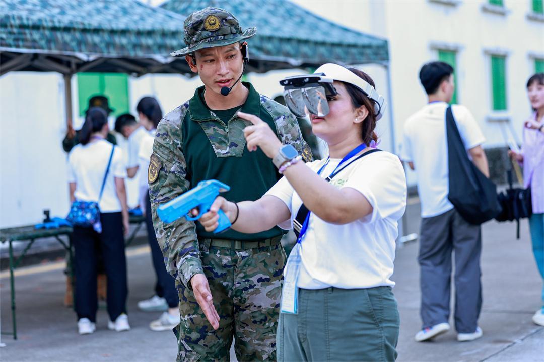 武警廣東總隊政治工作部領(lǐng)導(dǎo)賴云飛介紹:“今年的進軍營活動融入紀(jì)念抗戰(zhàn)勝利80周年元素,體現(xiàn)粵港澳三地同心抗敵、血脈相依的歷史背景,讓孩子們在這里打開眼界,有所啟發(fā)。”