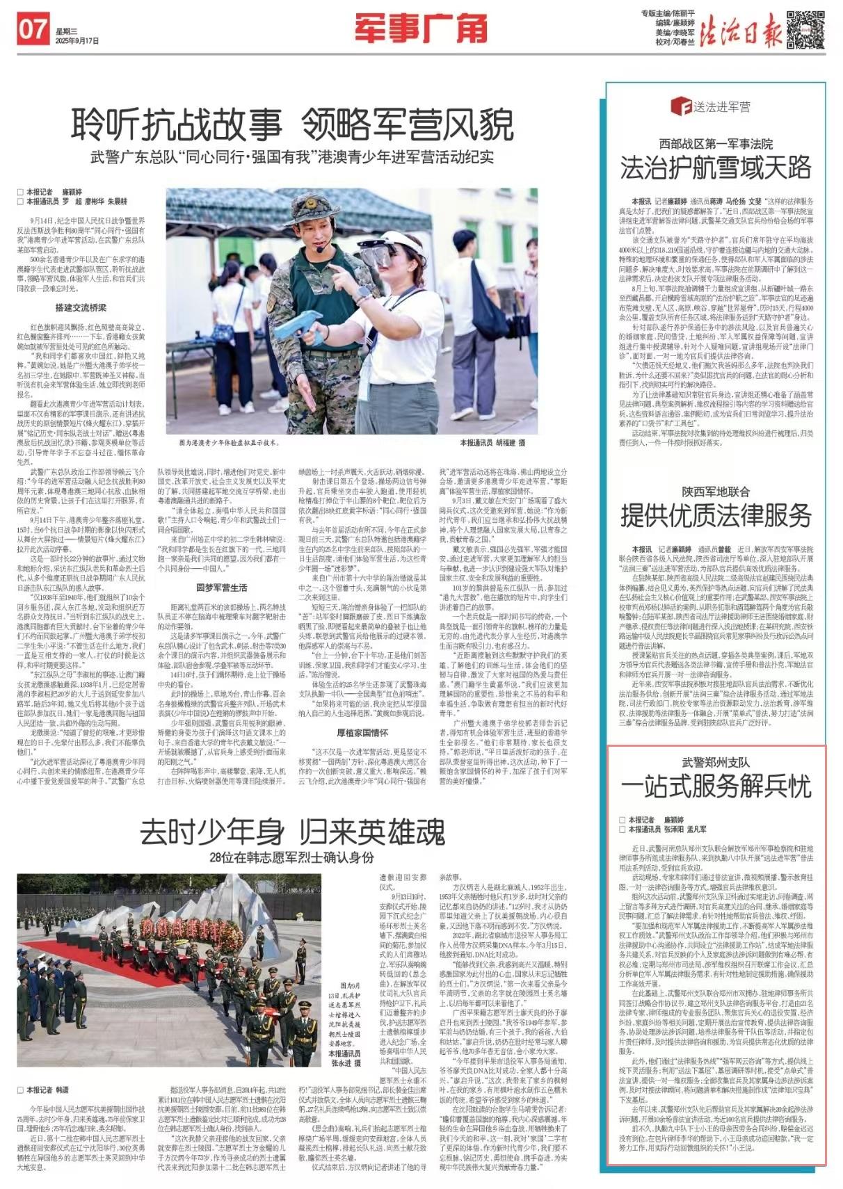 在此基礎(chǔ)上,武警鄭州支隊聯(lián)合鄭州市雙擁辦、駐地律師事務(wù)所共同簽訂戰(zhàn)略合作協(xié)議書,建立鄭州支隊法律咨詢服務(wù)平臺,打造由21名法律專家、律師組成的專業(yè)服務(wù)團(tuán)隊,聚焦官兵關(guān)心的退役安置、經(jīng)濟(jì)糾紛、家庭糾紛等相關(guān)問題,定期開展法治宣傳教育、提供法律咨詢服務(wù)、協(xié)助處理涉法涉訴問題、培養(yǎng)法律服務(wù)骨干隊伍等活動,并指定包片責(zé)任律師,及時提供法律咨詢和援助,為官兵提供常態(tài)化優(yōu)質(zhì)的法律服務(wù)。
