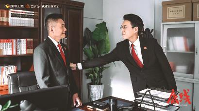 首部全景展現(xiàn)我國(guó)司法改革最新成果的法治題材電視劇《底線》正在熱播,鋪展當(dāng)代敘事視角下的法治中國(guó)圖景。圖為該劇劇照,右為主演靳東,左為特別出演張志堅(jiān)。
