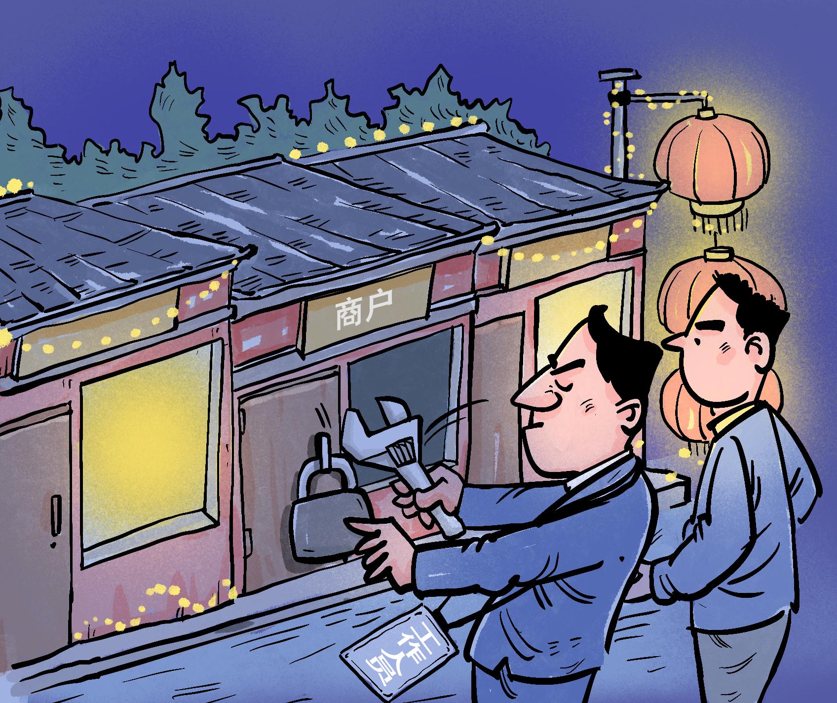 近日,某地古城下發(fā)通知,倡導(dǎo)商戶春節(jié)期間整夜開燈,營(yíng)造喜慶的節(jié)日氛圍。一商戶拒絕半夜開燈,古城工作人員竟帶人撬鎖進(jìn)店將燈打開,并加裝新鎖。此事引發(fā)輿論關(guān)注。目前,當(dāng)?shù)亟值酪阎虑覆⒋_保類似事件不再發(fā)生。
