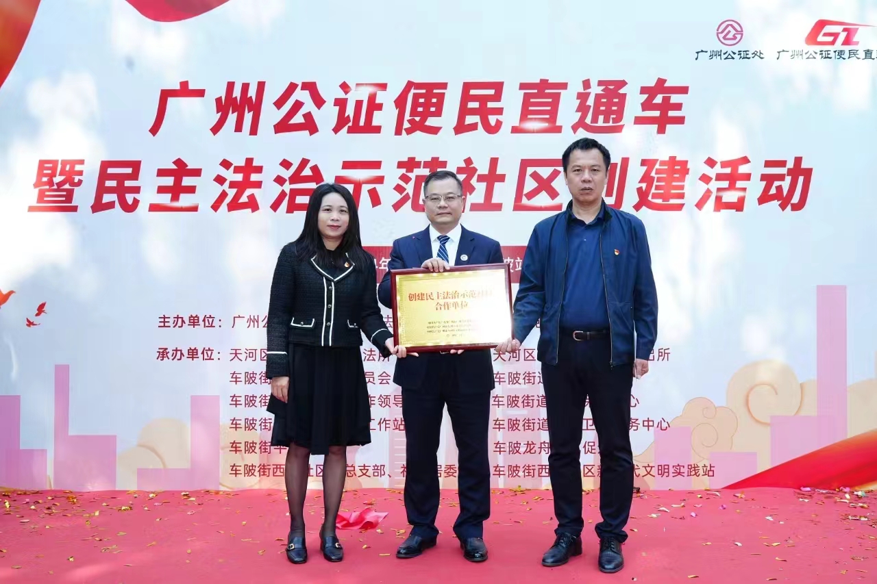 3月20日上午,廣州公證處與天河區(qū)司法局、車陂街道黨工委、辦事處在車陂公園聯(lián)合舉辦了廣州公證便民直通車暨民主法治示范社區(qū)創(chuàng)建活動啟動儀式。車陂街道自此拉開了以基層社區(qū)為依托,以黨建為引領(lǐng),以公證服務(wù)為抓手,協(xié)同司法、公證、街道三方力量合作創(chuàng)建民主法治示范社區(qū)的序幕。