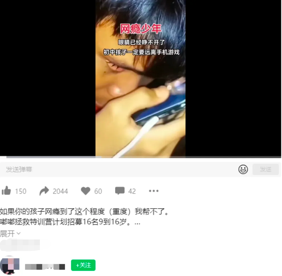 自詡“教育專家”“特訓(xùn)教官”的網(wǎng)紅博主們,用同樣的話術(shù),歇斯底里地控訴游戲,呼吁國(guó)家全面禁止游戲,刻意炮制萬(wàn)千家長(zhǎng)們希望孩子戒掉網(wǎng)癮、遠(yuǎn)離游戲沉迷的焦慮,贏得了不少家長(zhǎng)的點(diǎn)贊和轉(zhuǎn)發(fā),當(dāng)然,還有消費(fèi);他們販賣的新型“戒網(wǎng)癮學(xué)?!薄笆罴偬赜?xùn)營(yíng)”“課程”動(dòng)輒幾萬(wàn)元,這些機(jī)構(gòu)提出的希望令家長(zhǎng)們無(wú)法拒絕——“還您一個(gè)好孩子”。