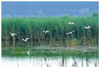 2021年以來,山東濟南加大白云湖濕地公園生態(tài)保護修復力度。如今,園內動植物資源豐富,有千畝紅蓮、蘆葦蕩,現(xiàn)有高等植物223種,記錄鳥類145種、魚類22種,東方白鸛、青頭潛鴨等珍稀鳥類在此棲息。圖為整治后的白云湖濕地成為鳥類樂園。 (資料圖片)
