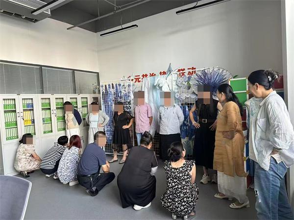 7月18日,在山東省臨沂市蘭山區(qū)人民法院“青橙計劃”開設(shè)的家庭教育指導(dǎo)課上,家長們被要求扮演蹲在地上的“接受者”,換位思考。受訪者供圖