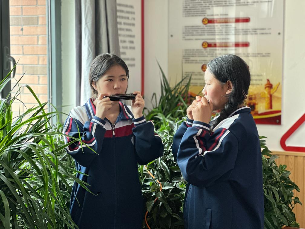 從高海拔牧區(qū)到省會西寧讀書,可愛的老師、親密的伙伴、舒適的學(xué)習(xí)生活環(huán)境,讓2023年入學(xué)的果洛初中生鬧拉很快適應(yīng)。一入學(xué),她就加入上海援青教師闞延俊組建的口琴社團(tuán),最愛的曲子是《友誼地久天長》。