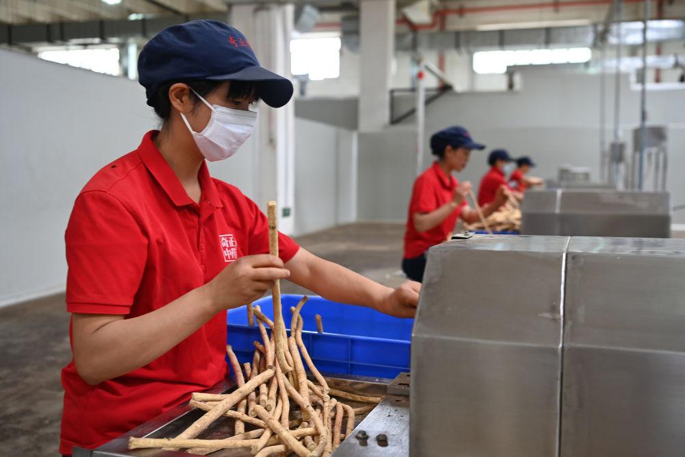 2024年7月23日,工人在甘肅定西隴西縣文峰鎮(zhèn)一家藥材企業(yè)加工中藥材切片。隴西中藥材種植歷史悠久,盛產(chǎn)300余種中藥材,是全國(guó)“道地藥材”的重要產(chǎn)區(qū)之一。近年來(lái),當(dāng)?shù)赝ㄟ^(guò)推行產(chǎn)地種植標(biāo)準(zhǔn)化、藥材加工精深化、原藥倉(cāng)儲(chǔ)規(guī)?;⑺幉慕灰资袌?chǎng)化、質(zhì)量監(jiān)測(cè)常態(tài)化、產(chǎn)業(yè)發(fā)展品牌化等改革創(chuàng)新舉措,推動(dòng)中醫(yī)藥產(chǎn)業(yè)高質(zhì)量發(fā)展。