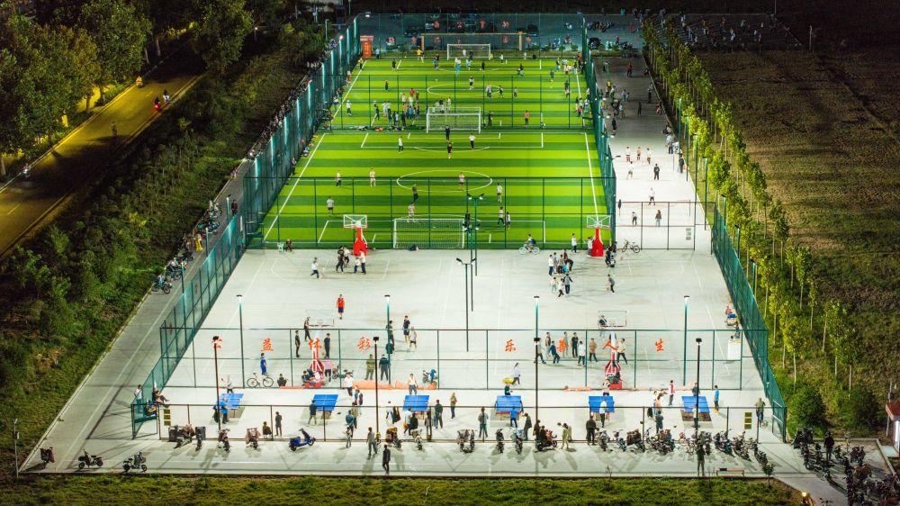 2024年9月21日,居民在山東省寧陽(yáng)縣城區(qū)一處體育公園內(nèi)運(yùn)動(dòng)(無(wú)人機(jī)照片)。近年來(lái),寧陽(yáng)縣充分利用城市空閑區(qū)域,新建或改建體育健身公園,為居民打造“10分鐘體育健身圈”,讓城市的“金角銀邊”成為全民健身大舞臺(tái)。