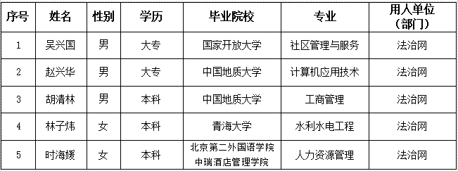 經(jīng)公開招聘,擬錄用以下5人為報(bào)社聘用人員,現(xiàn)將擬錄用人員信息公示如下: