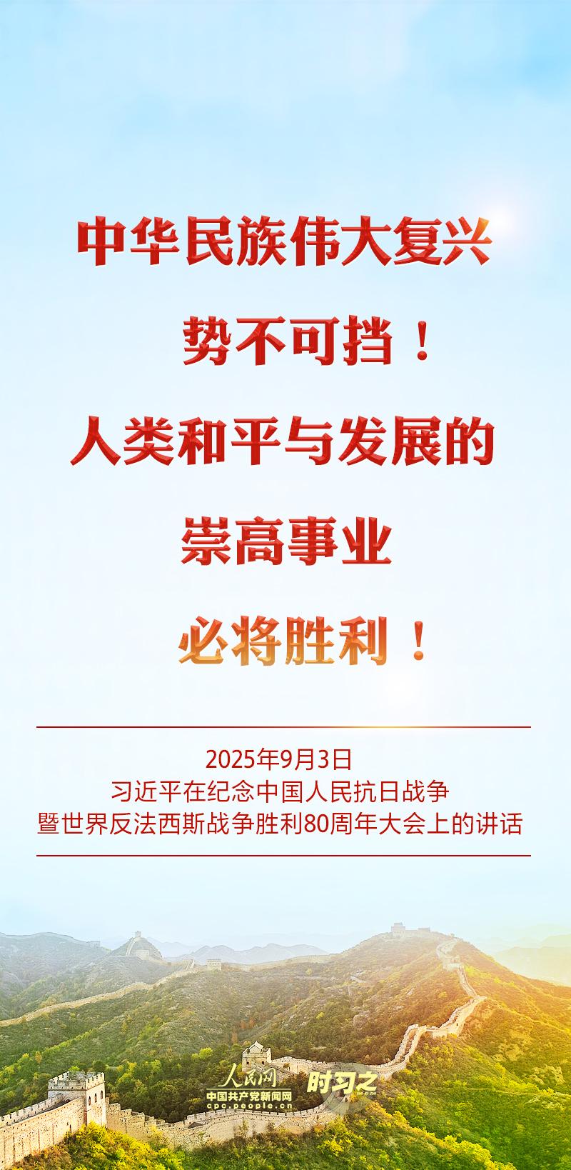 2025年9月3日,中共中央總書記、國家主席、中央軍委主席習(xí)近平在紀(jì)念中國人民抗日戰(zhàn)爭(zhēng)暨世界反法西斯戰(zhàn)爭(zhēng)勝利80周年大會(huì)上的莊嚴(yán)宣示,道出了億萬人民的心聲。
