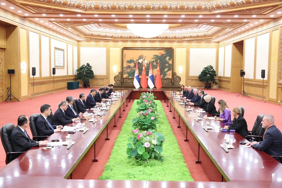 新華社北京9月4日電(記者溫馨、曹嘉玥)9月4日下午,國家主席習(xí)近平在北京人民大會堂會見來華出席紀(jì)念中國人民抗日戰(zhàn)爭暨世界反法西斯戰(zhàn)爭勝利80周年活動的塞爾維亞總統(tǒng)武契奇。