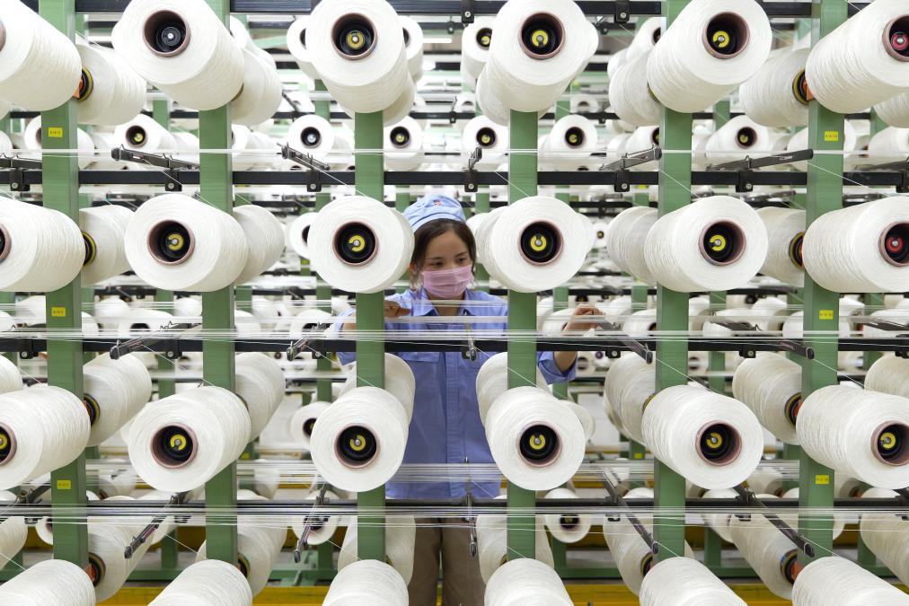 在中國(guó)平煤神馬集團(tuán)簾子布發(fā)展公司布機(jī)車間,工作人員在檢查絲線生產(chǎn)情況。新華社記者 李嘉南 攝