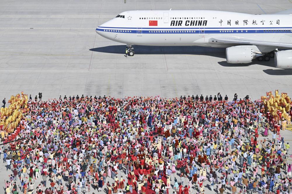 9月23日,中共中央總書記、國家主席、中央軍委主席習(xí)近平率中央代表團抵達烏魯木齊,出席新疆維吾爾自治區(qū)成立70周年慶?;顒?。
